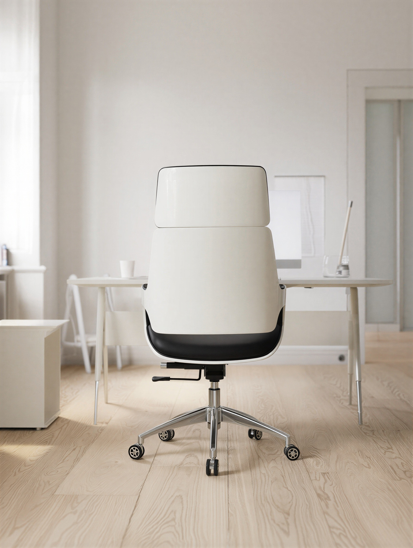 L’Aura Signature est un fauteuil de bureau pivotant au design bicolore affirmé, conçu pour les professionnels qui recherchent un siège à la fois moderne, confortable et durable. Son revêtement noir et blanc contrasté, ses lignes architecturales et son piètement aluminium chromé à 5 branches en font une pièce maîtresse dans tout espace de travail contemporain.