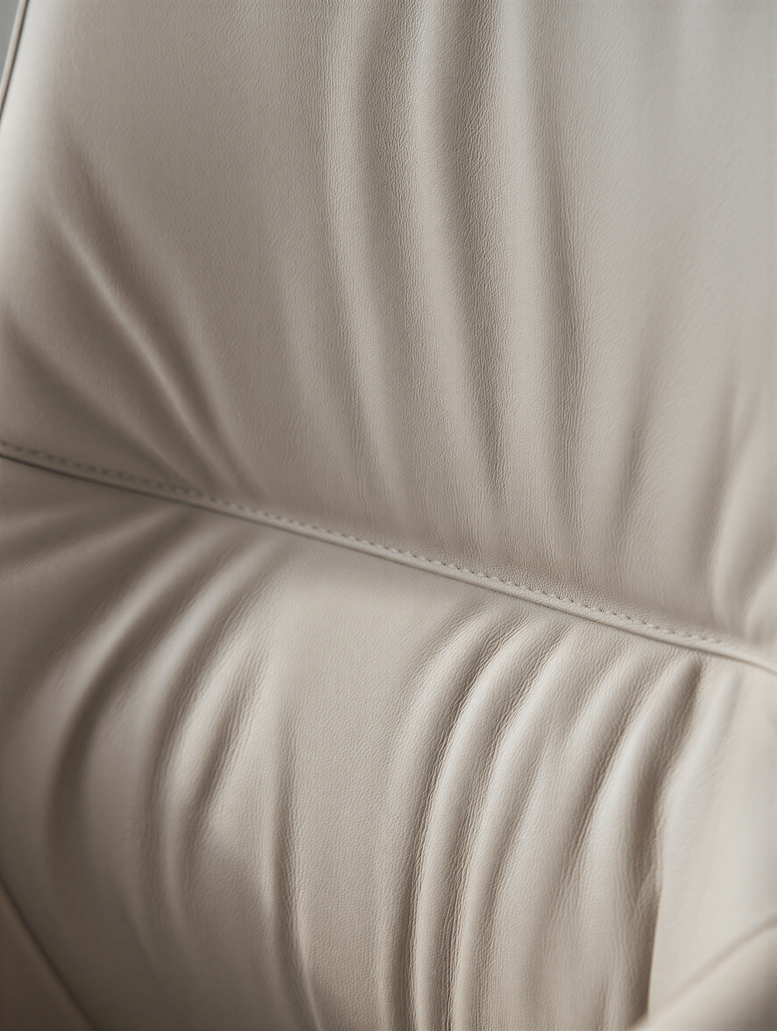 Essuyez régulièrement le cuir avec un chiffon doux légèrement humide. Pour préserver sa souplesse et son éclat, appliquez une crème nourrissante spéciale cuir tous les 3 à 6 mois. Évitez l’exposition prolongée au soleil direct et aux sources de chaleur.