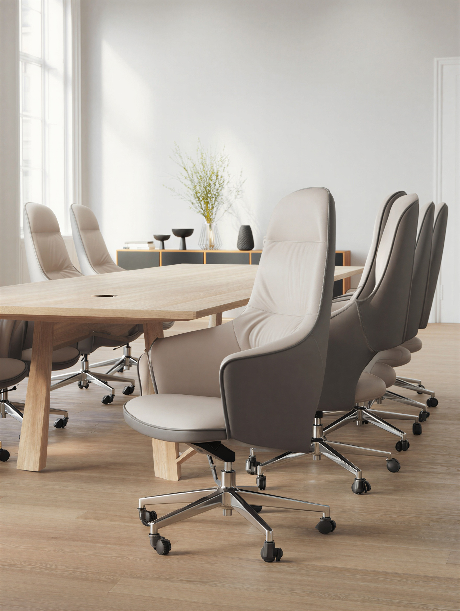 Idéal pour : les espaces de direction, salles de réunion et postes administratifs nécessitant un siège élégant, confortable et adapté à un usage quotidien prolongé.